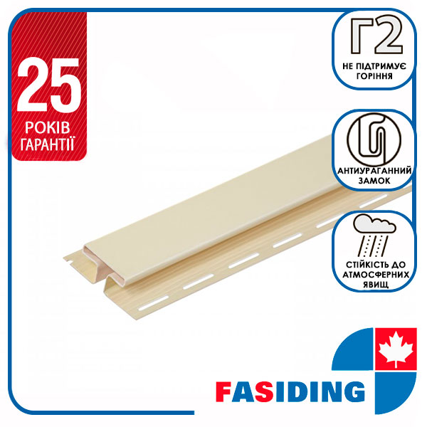 Планка для з'єднання панелей сайдингу в ряд. Може використовуватись для переходу з сайдингу до фасадних панелей і навпаки. Монтується вертикально, шляхом вкручування саморізів до обрешітки по центру циліндрічного отвору на планці кожні 40 сантиметрів.