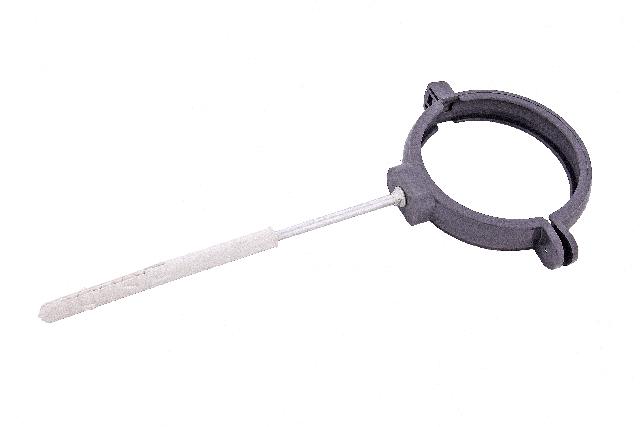 Застосовується для кріплення водостічних труб до фасаду будинку. В асортименті є дюбелі довжиною 100, 160 і 220 мм для можливості застосування з різною товщиною фасадного утеплювача. Тримачі розміщуються на відстані 2 м один від одного при висоті будівлі до 10 м і 1,5 м - при висоті будівлі більше 10 м. Тримач труби складається з дюбеля, за допомогою якого труба кріпиться до стіни будинку, та хомута, яким фіксується труба. Для зручності монтажу хомут держака труби складається з двох частин. Таким чином при монтажі водостічної труби не треба протягувати трубу через всі держаки.