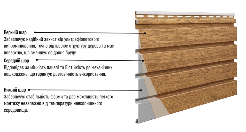 Ще одна перевага — відсутність додаткового догляду: немає потреби фарбувати, лакувати чи просочувати матеріал. Стійкість до подряпин і ударів гарантує збереження фасаду навіть у динамічному міському чи заміському середовищі.