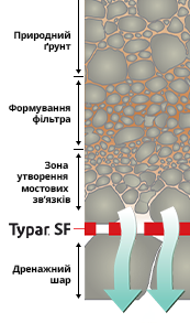 Геотекстиль Typar SF має високу стійкість до проколів і продавлювання. Завдяки цьому, геосинтетика Typar SF забезпечує захист гідроізоляційних геомембран від пошкодження і додатково зміцнює конструкцію, так як сприймає розтягуючі зусилля.
